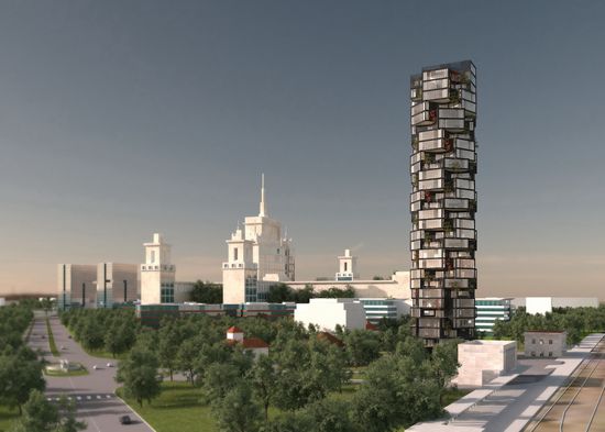 “Conceptl arhitectural al cladirii se concentreaza pe calitati oferite de cele mai exclusiviste proiecte rezidetiale din lume, precum privelisti unice, inaltimea spatiului, lumina naturala, materiale premium, autonomie energetica si tehnologie legata de confort. Volumul si geometria cladirii, in spirala, ofera o vedere unica pentru fiecare locuinta. Terasele generoase permit fiecarui apartament o deschidere de 270°. Acest proiect pune Bucurestiul pe harta proiectelor emblematice moderne” spune Traian Bompa, arhitect principal Sane Architecture.