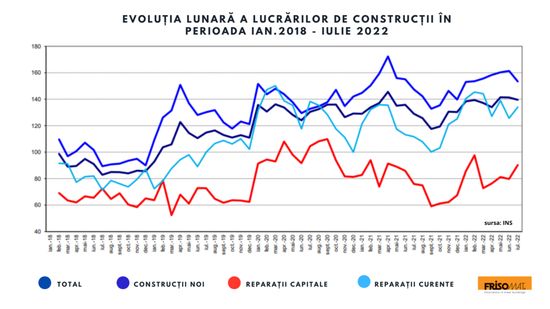 Potrivit datelor de la Institutul National de Statistica, in primele sapte luni din 2022, volumul lucrarilor de constructii a crescut, ca serie bruta, cu 4,7%, iar ca serie ajustata in functie de numarul de zile lucratoare si de sezonalitate, cu 2,7%.Pe fondul evolutiei economice pozitive din primul semestru din 2022, companiile au inaugurat peste 373.000 mp de spatii industriale si logistice, astfel ca Romania a ajuns sa depaseasca granita de 6 milioane de mp.