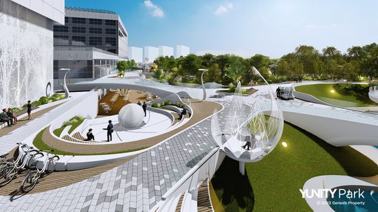 YUNITY Park este proiectat ca un campus dezvoltat in extensia biroului, care ofera suportul urban pentru experiente adaptate stilului de viata al oamenilor, atat pentru timpul petrecut la birou, cat si cel personal sau social.