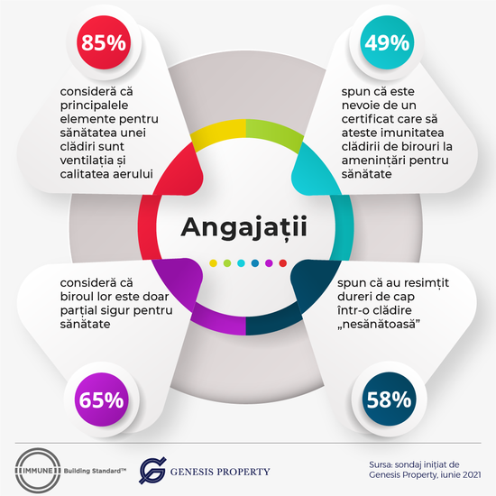„Covid-19 a schimbat nu doar modul in care angajatii isi percep biroul, ci si preocuparea lor privind sanatatea cladirii unde lucreaza. Ei sunt acum mult mai atenti la masurile sanitare din cladire, iar faptul ca doar 17,5% isi vad biroul ca fiind foarte sigur ne arata ca mai sunt multe de facut pentru cresterea imunitatii spatiilor interioare in care ne petrecem cea mai mare parte a timpului. Cei mai multi dintre ei considera esentiale dotari precum sisteme performante de filtrare a aerului si apei. Aceste sisteme fac parte dintr-un set complex de 135 de masuri prevazute de IMMUNE Building Standard™ pentru cladiri sanatoase”, spune Stefan Tudos, vicepresedinte in cadrul Genesis Property, responsabil de administrarea portofoliului de clienti.