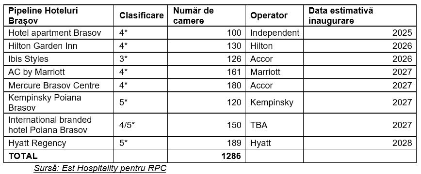 In 2024, Brasovul a inregistrat 1,5 milioane de turisti, a treia destinatie a tarii dupa Bucuresti (1,9 milioane) si Constanta (1,7 milioane). Dupa deschiderea Swissotel din Poiana Brasov de anul trecut, alte 1.286 de camere afiliate unor lanturi internationale sunt in dezvoltare pentru perioada 2025-2028.