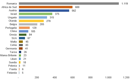 Topul celor mai activi cumparatori de active imobiliare in Romania dupa tara de origine (2018-2022)
