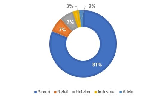 Din punct de vedere al structurii segmentelor de piata care au atras atentia investitorilor romani in ultimii 5 ani, proiectele de birouri au reprezentat 81% din volumul total, urmatoarele pozitii fiind ocupate de sectorul de retail si cel hotelier (7% fiecare).