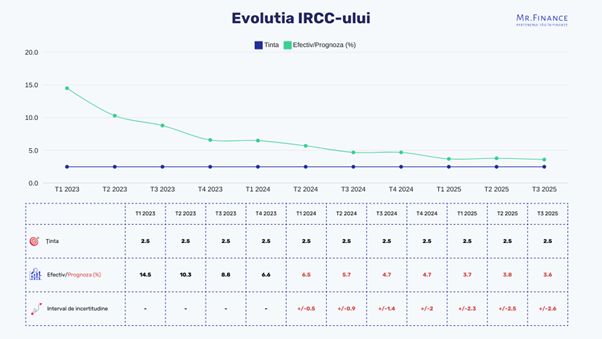 "IRCC se afla pe o tendinta descrescatoare in urmatoarele doua trimestre. Odata ce inflatia a ajuns la 6% si BNR se gandeste sa scada dobanda de referinta, si dobanzile la credite vor urma aceasta traiectorie descendenta in urmatoarele trimestre. Acest lucru va genera o reducere a ratelor celor 450.000 de romani care au credite ipotecare cu IRCC si va duce si la cresterea numarului de credite noi acordate. Totusi, in urmatoarea perioada, ar trebui sa fim atenti la bugetul nostru, la creditele pe care le avem si la cele pe care urmeaza sa le accesam. Pe langa acestea, este necesar sa urmarim si gradul de indatorare. Desi gradul maxim este de 40% - un prag destul de mare si chiar periculos -, este recomandat ca ratele aferente creditelor sa nu depaseasca 25-30% din venitul nostru lunar", declara Ion Soltinschi, consultant si planificator financiar la Mr.Finance.