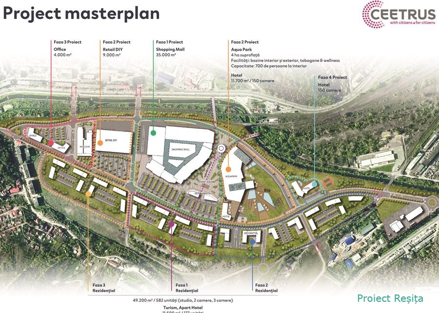 - La Resita vom dezvolta, intr-un orizont de 15 ani, un amplu proiect mixed-use de regenerare urbana, pe o suprafata de 40 ha, pe fosta platforma industriala UCMR - Mociur. Proiectul va include multiple functiuni: shopping, aqua park, rezidential, hotel, birouri, clinica medicala. Ne dorim sa transformam platforma Mociur intr-o destinatie atat pentru cetateni, cat si pentru turisti, un loc dedicat interactiunilor sociale, cumparaturilor, petrecerii timpului liber, divertismentului si afacerilor. Oamenii vor avea totul la indemana, intr-o raza de 15 minute. Proiectul adopta conceptul de "15 minutes city", dezvoltat de Carlos Moreno, profesor la Universitatea Sorbona, pentru Paris si implementat de primarul orasului, Anne Hildalgo. Pentru activitatile copiilor, munca, sport, servicii medicale si de divertisment, locuitorii nu vor trebui sa traverseze de multe ori orasul sau sa parcurga zilnic zeci de kilometri, ci vor avea totul la indemana, intr-un sfert de ora de mers pe jos sau cu mijloace alternative de deplasare. Dezvoltarea proiectul este in stransa corelare cu viziunea autoritatilor locale, dar si cu liniile directoare de dezvoltare regionala. Astfel, prin conjugarea eforturilor, crestem sansele pentru o dezvoltare sustenabila a orasului si regiunii, si contribuim la crearea premiselor pentru o comunitate prospera. Masterplanul pentru Resita presupune o dezvoltare in patru etape: faza 1 - centrul comercial (35.000 mp), faza 2 - un aqua park, un centru de edutainment, un hotel si o zona de retail DIY (60.700 mp), faza 3 - birouri (4.000 mp) si rezidential (cu 3 etape de dezvoltare, o anvergura totala de 49.200 mp si 1.500 de unitati locative). In prezent, lucram la PUZ si speram ca in septembrie sa demaram lucrarile la faza 1.