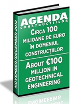 A aparut analiza pietei de constructii geotehnice pentru anul 2012, documentul fiind structurat in trei pagini. Colectia de articole tematice include materialele redactionale publicate in cadrul revistei Agenda Constructiilor la sectiunea dedicata analizelor de piata anuale in domeniu. Sunt incluse date statistice, analize si comentarii ale reprezentantilor companiilor: Willemen, Solentache Bachy, Geosond, Terratest Geotehnic, Zublin, Bauer, Edrasis – C. Psallidas si altele. Sectorul autohton al constructiilor geotehnice si fundatiilor se inscrie, in acest an, pe un trend usor ascendent fata de nivelul din 2011, potrivit managerilor companiilor reprezentative pentru domeniu, care au anuntat majorari ale cifrelor de afaceri pe fondul unei evolutii moderate a volumului investitiilor private. Totusi, sporirea din acest an poate fi pusa si pe seama unui nivel minim al activitatii in 2011. Pe piata de profil din Romania sunt active aproximativ 25 de companii, ce au raportat afaceri totale de circa 100 milioane de euro anul trecut. Pe fondul evolutiei din 2012 a investitiilor in economia autohtona, managerii acestora sunt, in ansamblu, optimisti, asteptandu-se la o majorare a investitiilor in sectorul privat, concomitent cu o sporire a volumului de proiecte. In perioada recesiunii s-a remarcat o reducere a nivelului de activitate in sector, veniturile totale ale societatilor specializate diminuandu-se cu o cota de 37,5%, pornind de la valoarea referentiala de aproximativ 160 milioane de euro din 2008, la 100 milioane de euro anul trecut. Pentru informatii suplimentare, click aici!ABONARE REVISTA (click aici): PROIECTE | INVESTITII | REVISTE | INDEX COMPANII