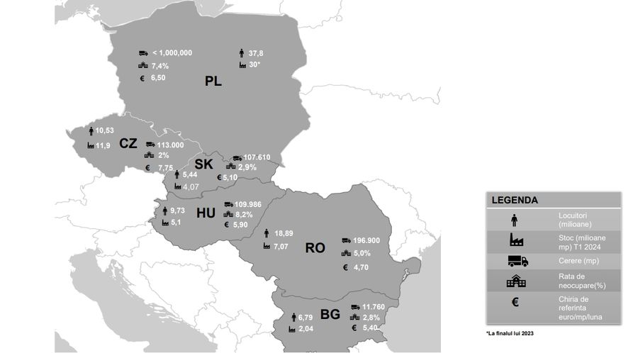 Harta industriala - Europa Centrala si de Sud-Est, T1 2024