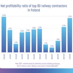 Valoarea estimata a 270 de proiecte feroviare majore aflate atat in curs de desfasurare, cat si de planificare, este de 125 miliarde zloti, din care 37 miliarde zloti (30% din suma totala) reprezinta proiectele demarate, se arata in raportul Spectis intitulat „Constructia cailor ferate in Polonia 2022-2027”. Diferenta considerabila dintre valoarea proiectelor in derulare si a celor aflate in etapa de planificare releva un potential pe termen lung pentru cresterea acestei ramuri a industriei constructiilor. Regiunile de top in ceea ce priveste valoarea proiectelor feroviare includ Malopolskie, Lodzkie, Mazowieckie, Slaskie si Podlaskie. Aceste cinci voievodate la un loc reprezinta peste 60% din totalul proiectelor. Este de asteptat ca Opolskie, Lubuskie, Warminsko-Mazurskie, Swietokrzyskie si Podkarpackie sa fie regiunile cu cel mai scazut nivel de activitate de investitii in segmentul feroviar in urmatorii ani. Veniturile anuale cumulate realizate de primele 80 de companii de constructii de cai ferate s-au stabilizat la 30 miliarde zloti, din care aproape 12 miliarde zloti au constituit proiectele feroviare. Sectorul constructiilor de cai ferate din Polonia este inca destul concentrat. Din primele 80 de companii incluse in raport, cele mai mari firme au o cota de piata de 43%. In ultimul deceniu, sectorul polonez CF a fost destul de instabil, cu o volatilitate ridicata in ceea ce priveste volumul comenzilor. De asemenea, segmentul respectiv este puternic dependent de activitatea de investitii a unei singure entitati contractante. Un inceput intarziat in utilizarea efectiva a fondurilor UE disponibile pentru Polonia in cadrul exercitiului financiar 2021-2027 devine tot mai mult o amenintare pentru continuarea unei situatii economice pozitive pe segmentul feroviar. Rentabilitatea relativ scazuta a sectorului constructiilor feroviare este principalul sau punct sensibil. In perioada 2016-2020, marja medie a profitului net pentru cele 80 de companii a fost de 1,9%, fiind afectata de problemele financiare cu care se confrunta un numar de competitori majori de pe piata ale caror rezultate au influentat rezultatele industriei in ansamblu. O analiza recenta a rezultatelor financiare publicate de marile societati din bransa arata insa ca profitabilitatea neta a industriei s-a imbunatatit semnificativ in 2021 pentru al doilea an consecutiv, apropiindu-se de nivelul record din 2010, de aproape 6%. Pentru informatii suplimentare, click aiciABONARE REVISTA (click aici): PROIECTE | INVESTITII | REVISTE | INDEX COMPANII