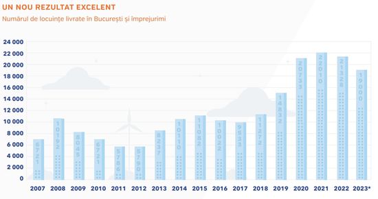 Alte peste 8.000 de case si apartamente se afla in acest moment in diferite faze de dezvoltare si ar urma sa fie finalizate in 2024 si 2025, in functie de respectarea graficelor de construire dar si de ritmul de receptie al unitatilor rezidentiale finalizate.
