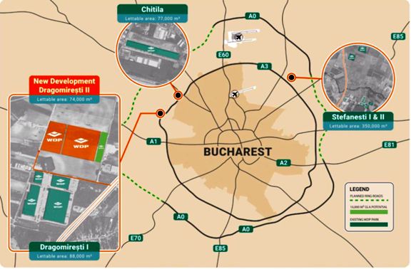 WDP Romania are o prezenta puternica pe piata locala, cu un portofoliu de aproape 2 milioane m2. Parcurile industriale ale companiei sunt amplasate in intreaga tara, in toate zonele urbane importante - Bucuresti, Timisoara, Pitesti, Arad, Cluj, Brasov, Sibiu, Braila, Deva, Constanta, Ramnicu Valcea si Ploiesti. WDP Romania este lider de piata in dezvoltarea de facilitati built-to-suit si in oferirea de solutii personalizate pentru companii din diverse domenii, cum ar fi productie, retail, farmaceutic sau logistica.