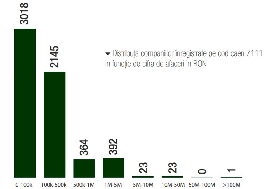 Doar anul trecut domeniul arhitecturii a crescut cu 15% fata de anul 2020, conform analizei, bazate pe cifrele de afaceri comunicate de Registrul Comertului. Totusi, piata de arhitectura este foarte polarizata. In piata sunt active circa 6.000 de firme de arhitectura si doar 7% dintre acestea obtin venituri anuale ce depasesc un milion de lei. O treime din intreaga piata de arhitectura este controlata de cele mai puternice 100 de firme din domeniu, mai arata datele IBC Focus.