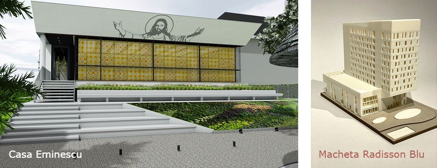 Un proiect foarte drag noua este Casa Eminescu nr. 6 (Timisoara), ce are ca beneficiar Arhiepiscopia Banatului, acesta fiind compus din 3 parti: consolidarea si restaurarea unei cladiri existente construite in 1933, realizarea unei extinderi ce acomodeaza o sala de conferinte (atat pentru uz intern cat si pentru uz public) si alte spatii ce deservesc aceasta functiune, precum si amenajarea sptiului exterior. Lucram si la proiectul "Interconectarea cladirilor existente si constructie noua in incinta Spitalului Clinic Judetean de Urgenta «Pius Branzeu» Timisoara, in vederea reorganizarii circuitelor medicale pentru departamentele: Unitate Primiri Urgente (UPU), Chirurgie, Anestezie si Terapie Intensiva (ATI) si Centru de Mari Arsi". Acesta presupune integrarea unei cladiri de circa 20.000 mp in cadrul ansamblului; rolul nostru ca subproiectanti ai ascocierii Tractebel Romania si Christian Tanascaux a fost acela de a realiza expresia noii investitii, inclusiv proiectul tehnic al fatadelor si urmarirea santierului. Lucrarea urmeaza a fi finalizata in 2025.
