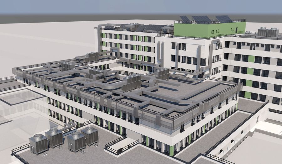 Tip acoperis: sarpanta, pentru eficientizarea volumului de aer tratat. Peste 80% din suprafata acoperisului indreptata spre sud, pentru cat mai multe panouri fotovoltaice si producerea de energie din surse regenerabile;