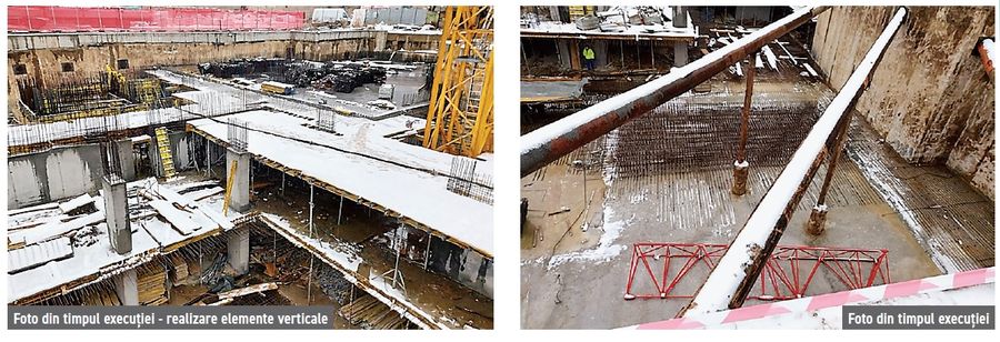 Pentru sustinerea pamantului, pe perioada executiei subsolului, proiectul a impus realizarea unei incinte din pereti de panouri (pereti mulati) avand grosimea de 60 cm si fisa de la 13 la 15,5 metri, pe tot conturul (cu exceptia strazii Viilor), avand cota superioara a peretelui mulat la cote diferite, in functie de pozitionarea in plan. Carcasele de armatura sunt dimensionate corespunzator eforturilor maxime ce actioneaza asupra peretilor. Pe latura cu strada Viilor s-a prevazut realizarea excavatiei taluzata cu panta de 2:1, ancorata cu soil nailing si torcretata cu un torcret armat cu grosimea de 6 cm.