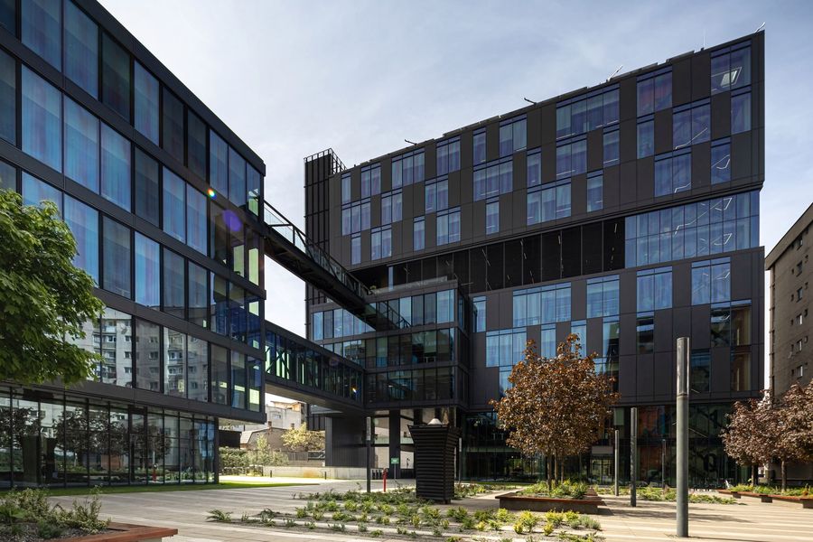Pe termen mediu, suntem preocupati de optimizari ale proceselor interne de lucru, sper eu cu sansa de a intra in alta epoca. Anul acesta este unul in care se desfasoara mai multe evenimente prin care se premiaza arhitectura romaneasca. Cel mai important este BNA - Bienala Nationala de Arhitectura - la care am fost onorat cu titlul de presedinte de onoare al editiei desfasurate sub genericul "Altfel", in octombrie 2025. Aceasta onoare nu ne permite sa inscriem lucrari in competitie, pentru a evita conflictul de interese, motiv pentru care am decis sa participam doar la BATRA, Bienala de Arhitectura Transilvania, cu cateva lucrari recente. Le amintesc aici, pentru ca reprezinta realizarile noastre din ultima perioada. Un prim exemplu este cladirea de cercetare-dezvoltare a grupului Bosch, de la Cluj-Napoca, CLJ 201, a doua din ansamblul dezvoltat in centrul orasului. Este o cladire care se bazeaza pe mai multe inovatii structurale si spatiale pentru a oferi conditii deosebit de atractive pentru creativitate si lucru in echipe. O alta cladire la care s-a lucrat mai multi ani, dar pe care nu am putut-o prezenta finalizata, este cea a parkingului realizat de Fondul de pensii al Bisericii Reformate din Cluj-Napoca, foarte central. Cladirea este foarte atent inserata in context, avand o parte care configureaza un colt pe o strada importanta si o alta parte dezvoltata, practic, in interiorul cimitirului central, monument istoric. Pentru prima, am realizat o fatada placata cu piatra cu forme aluzive la ordine istorice. Pentru a doua, am dezvoltat o anvelopa de camuflaj, din elemente de lemn, pentru a se disimula in parcul care cuprinde cimitirul. A treia lucrare terminata, pe care o vom expune, este de cu totul alta factura. Este un patinoar pentru hochei pe gheata, realizat in comuna Remetea, pentru o echipa locala care are un portofoliu de performante uimitor. Este o investitie privata pe care am realizat-o la un standard de calitate a spatiilor necesare pentru sportive si public care rivalizeaza cu cel al investitiilor publice similare.