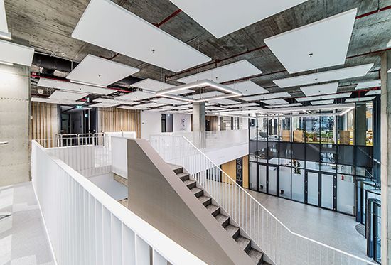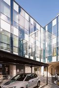 perspectiva reglementarilor urbanistice. Spre curte totul se schimba. Am realizat o extindere necesara pentru circulatiile interioare cu structura usoara si inchidere contemporana. Am folosit, partial, acoperisul si unul dintre peretii din spate pentru a amplasa multitudinea de echipamente tehnice necesare functionarii unei astfel de cladiri", a declarat arh. Serban Tiganas, autorul conceptului arhitectural al cladirii.O mare provocare in realizarea acestui proiect a fost reprezentata de asigurarea locurilor de parcare impuse de primarie. Echipa de arhitecti si proiectanti a folosit o constructie subterana pentru un robot care stocheaza automat 16 autovehicule.