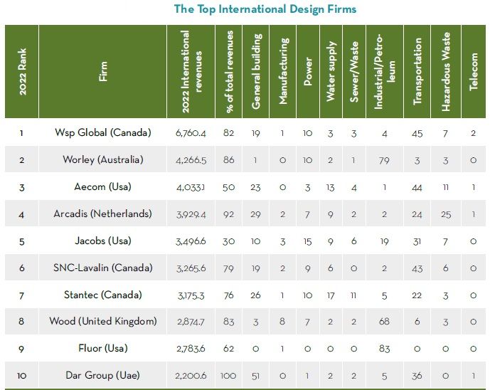 Un numar total de 12 companii italiene specializate in arhitectura si inginerie se afla in clasamentul celor mai mari 225 de grupuri internationale care exporta servicii de design la nivel global. Contingentul italian este condus de compania Maire Tecnimont, care ocupa locul 28 in lume, dar intr-o pozitie fruntasa ar trebui sa se claseze si Saipem (parte din grupul ENI), societate de inginerie si constructii care nu a furnizat rezultatele pentru realizarea analizei. Celelalte 11 firme de proiectare sunt active in cea mai mare parte in inginerie, cu exceptia a doua firme de arhitectura: ACPV Architects and ATI Project.Aceste date sunt prezentate intr-un raport Guamari, companie de analiza, cercetare de piata si comunicare in domeniul arhitecturii si ingineriei in constructii din Italia, semnat de prof. Aldo Norsa - "Raport 2023 in Industria Italiana de Arhitectura, Inginerie si Constructii" (eng. "Report 2023 on the Italian Architecture Engineering and Construction Industry").