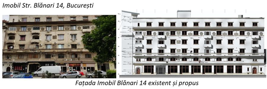 Un alt segment al proiectelor in lucru este cel al constructiilor civile, cladiri de patrimoniu, iar aici putem identifica reabilitarea si consolidarea imobilului din str. Blanari 14, monument istoric de categorie B, cunoscut in principal pentru functiunea sa culturala, celebrul Club al Arhitectilor, infiintat cu mai bine 50 de ani in urma, fiind cel mai vechi club studentesc. La nivele superioare, imobilul are functiunea de locuinte, astfel proiectul a beneficiat de programul de actiuni pentru punerea in siguranta din punct de vedere seismic al constructiilor existente din municipiul Bucuresti. Acest proiect a depasit faza de avizare si autorizare, urmand a incepe executia lucrarilor propuse.
