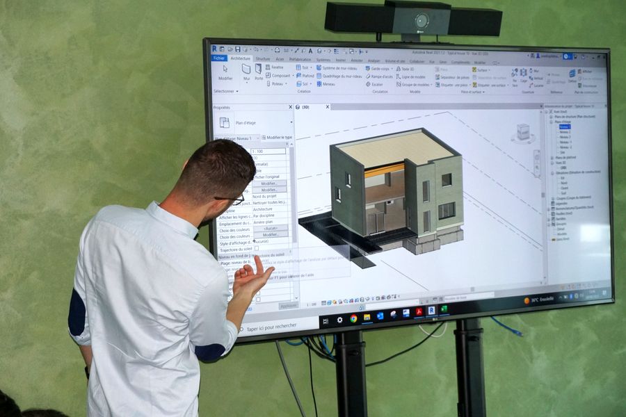 La stagiul de pregatire practica, din partea UTCB au participat Conf. Univ. Dr. Ing. Cristiana Croitoru si Conf. Univ. Dr. Ing. Mihnea Sandu, de la Departamentul de Sisteme Termo-hidraulice si pentru Protectia Atmosferei, care au subliniat ca studentii francezi au venit in cadrul unui schimb de experienta, fiind angrenati in cadrul proiectelor de cercetare derulate la momentul actual in cadrul universitatii din Bucuresti. ”Tematica din acest an s-a referit la realizarea unui model final de tip Digital Twin al cladirii EFdeN, amplasate in curtea institutiei noastre. Leviatan Design este un vechi partener al nostru si ne-am bazat pe experienta companiei pentru a clarifica modelul Digital Twin si a suprapune cat mai bine partea de cercetare/de invatamant cu cea practica. Din punctul nostru de vedere, Leviatan Design constituie un model de bune practici in activitatea de constructii si de aceea am ales sa demaram aceasta colaborare, care sa-i familiarizeze pe participantii la proiect in special cu sistemul de proiectare suprapusa a tuturor specialitatilor, pentru a evita coliziunile”, a declarat Cristiana Croitoru.