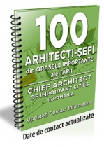 Lista contine 110 arhitecti-sefi ce activeaza in cadrul celor mai importante diviziuni administrative (primarii si/sau consilii judetene) din intreaga tara. Astfel, sunt evidentiati arhitectii-sefi din 41 de judete si municipiul Bucuresti (de la Primaria Capitalei si a celor sase sectoare), respectiv din 64 de localitati distincte, astfel: Adjud, Alba Iulia, Alexandria, Arad, Bacau, Baia Mare, Bistrita, Botosani, Braila, Brasov, Buftea, Buzau, Calafat, Calarasi, Campia Turzii, Campina, Carei, Cluj-Napoca, Constanta, Craiova, Curtea de Arges, Deva, Drobeta-Turnu Severin, Dragasani, Focsani, Galati, Gherla, Giurgiu, Hunedoara, Husi, Iasi, Lugoj, Mangalia, Medgidia, Medias, Miercurea Ciuc, Motru, Oradea, Otopeni, Petrosani, Piatra Neamt, Pitesti, Ploiesti, Ramnicu Sarat, Ramnicu Valcea, Reghin, Resita, Roman, Rosiori de Vede, Satu Mare, Sfantu Gheorghe, Sibiu, Sighisoara, Slatina, Slobozia, Suceava, Targoviste, Targu Jiu, Targu Mures, Timisoara, Tulcea, Turda, Vaslui, Vatra Dornei si Zalau. In perspectiva incheierii de parteneriate pentru efectuarea de livrari de materiale, tehnologii si servicii specifice, aveti posibilitatea sa consultati lista arhitectilor-sefi, care include informatii cu privire la: denumirea institutiei in cadrul careia activeaza acestia, date de contact ale specialistilor respectivi (nume, prenume, localitate, judet, cod postal, adresa, numar de telefon/fax, adresa de e-mail, website, telefon mobil) etc.