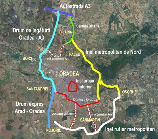 - Realizarea Inelului Metropolitan de Nord, menit a asigura conectivitatea DN 1 cu DN 19, astfel: Centura Osorhei (sensul giratoriu de pe DN 1, spre Fughiu) - municipiul Oradea, prin cartierele Tineretului, Podgoria, respectiv zona Gheorghe Doja - comuna Paleu, localitatile Saldabagiu de Munte si Paleu - Centura Biharia
