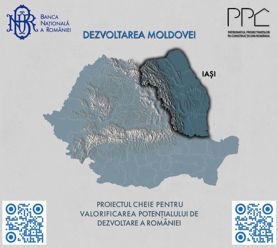 Patronatul Proiectantilor in Constructii din Romania (PPC) si Banca Nationala a Romaniei (BNR) au organizat luni, 21 octombrie 2024, la Palatul Culturii din Iasi, conferinta "Dezvoltarea Moldovei - proiectul-cheie pentru valorificarea potentialului de dezvoltare a Romaniei", un eveniment marcant pentru dezvoltarea regiunii Moldovei si pentru sectorul constructiilor din Romania. Acest eveniment a continua seria de conferinte dedicate rolului crucial pe care proiectarea in constructii il joaca in cresterea economica si modernizarea tarii.Conferinta de la Iasi a evidentiat importanta strategica a Moldovei in contextul investitiilor masive din ultimii ani, subliniind rolul pe care aceasta regiune il va avea in dezvoltarea economica a Romaniei. Totodata, aceasta a fost organizata in contextul deciziei PPC de a se extinde la nivel regional, cu deschiderea unor filiale in Iasi, Constanta, Timisoara si Cluj-Napoca, care vor functiona ca niste centre de excelenta, facilitand colaborarea, inovatia si dezvoltarea solutiilor adaptate nevoilor specifice fiecarei zone. In plus, filialele regionale vor asigura o reprezentare mai puternica si o sustinere adecvata a companiilor din domeniul constructiilor la nivel local, facilitand, astfel, dezvoltarea unor proiecte inovatoare si sustenabile, esentiale pentru viitorul economic al tarii.