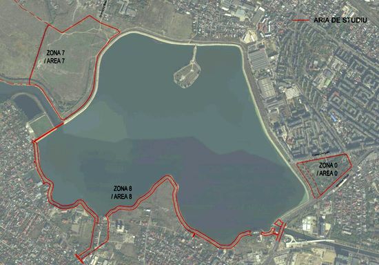 Fasia efectiva pentru care vor fi propuse solutii ce urmeaza sa fie implementate are 40-100 de metri latime (intre malul lacului si limitele de proprietate). Toata aceasta fasie e impartita in sase zone.