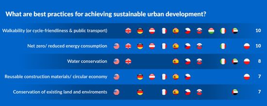 5 din cele 12 tari analizate considera ca districtele multifunctionale reprezinta o tendinta-cheie in planificarea urbana in urmatorul deceniu - Germania, Spania, Republica Ceha, Emiratele Arabe Unite si Polonia.