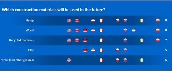 Printre tarile care declara ca sunt interesate de proiectarea cladirilor in armonie cu mediul se numara SUA, Germania, Franta, Slovacia, Italia si Polonia.