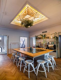 ansamblu urban format dintr-un imobil de patrimoniu, ce trebuie consolidat si restaurat si pentru un corp de nou de cladire (2S+P+4E), in zona Pietei Romane din Bucuresti, cu functiune mixta, de locuinte, birouri si retail. Pentru aceste doua lucrari, arhitectii din cadrul SYAA au depus deja oferte. Un alt obiectiv realizat in cadrul atelierului si deschis publicului este reprezentat de cafeneaua Simbio, amenajata intr-o casa de patrimoniu din zona Mantuleasa, iar lucrarile continua la mansarda si gradina.