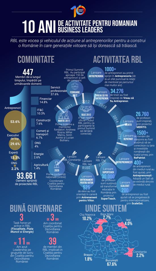 „RBL este o organizatie formata din oameni carora nu le este teama sa viseze, oameni care isi doresc sa schimbe Romania in bine. In RBL nu exista „nu se poate”, ci doar „e posibil”, cu increderea ca facand lucruri impreuna cu pasiune, lumea se schimba in bine.” a spus Presedintele Fundatiei Romanian Business Leaders, Dragos Petrescu.