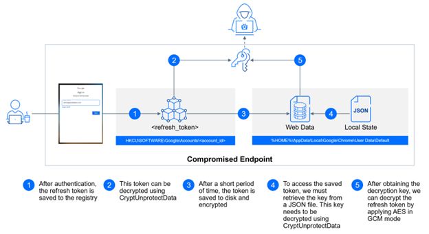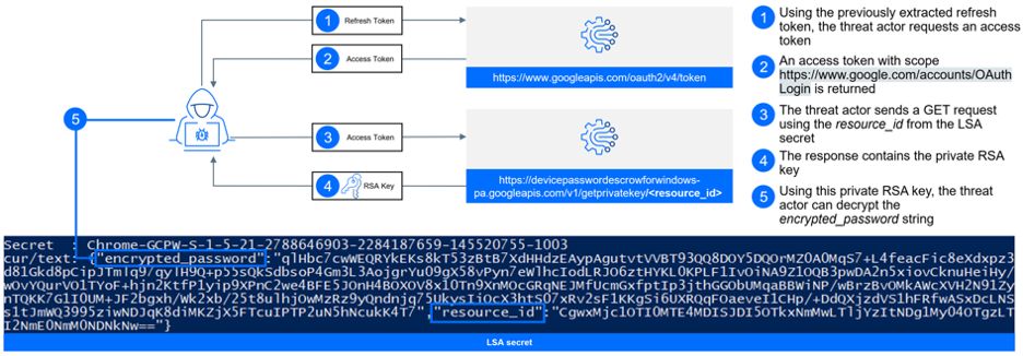 - decriptarea parolelor stocate local pentru a continua atacul si in afara ecosistemului Google