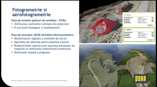 El a precizat ca, in santier, este folosita aerofotogrametria pentru verificarea si monitorizarea executiei. "Utilizam aerofotogrametria cu drone si utilizam aceste imagini pentru a crea modelul digital al terenului (DTM), pentru a crea un ortofotoplan si a face calculul cantitatilor care s-au executat si pentru generarea unui nor de puncte", a spus reprezentantul PORR Romania.