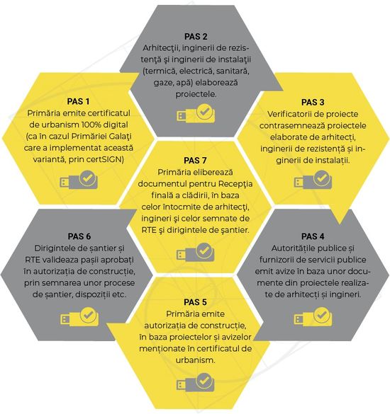Pasul 5. Primaria emite autorizatia de constructie, semnata electronic in baza proiectelor si avizelor mentionate in certificatul de urbanism.