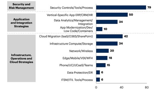 Sondajul Gartner a fost realizat in lunile martie si aprilie 2022 in randul a 134 de directori IT si lideri IT din cadrul unor companii de dimensiuni medii. Respondentilor li s-a cerut sa identifice proiectele IT active la momentul respectiv, care se coreleaza cu prioritatile lor tehnologice de top.