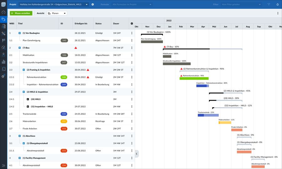 PlanRadar este o aplicatie de management al constructiilor, bazata pe cloud, care include o functie de diagrama Gantt. Diagrama Gantt se poate conecta cu managementul santierului, se pot aloca sarcini si se poate monitoriza progresul in timp real, generand rapoarte si generand analize detaliate. „Vizualizarea Gantt” din PlanRadar ii ajuta pe utilizatori sa vizualizeze fazele esentiale ale unui proiect. Combinand o interfata usor de utilizat cu un afisaj clar, utilizatorii pot crea planificari de proiecte, dupa un model Gantt standard, recunoscut universal. Optiunea „Vizualizarea Gantt” functioneaza cu functia Tichete din PlanRadar, facand-o mai eficienta, mai flexibila si mai usor de utilizat. In esenta, functia le permite managerilor de proiect sa fie la curent cu orice schimbari sau incidente spontane, pentru a se asigura ca stiu absolut totul despre proiectul lor.