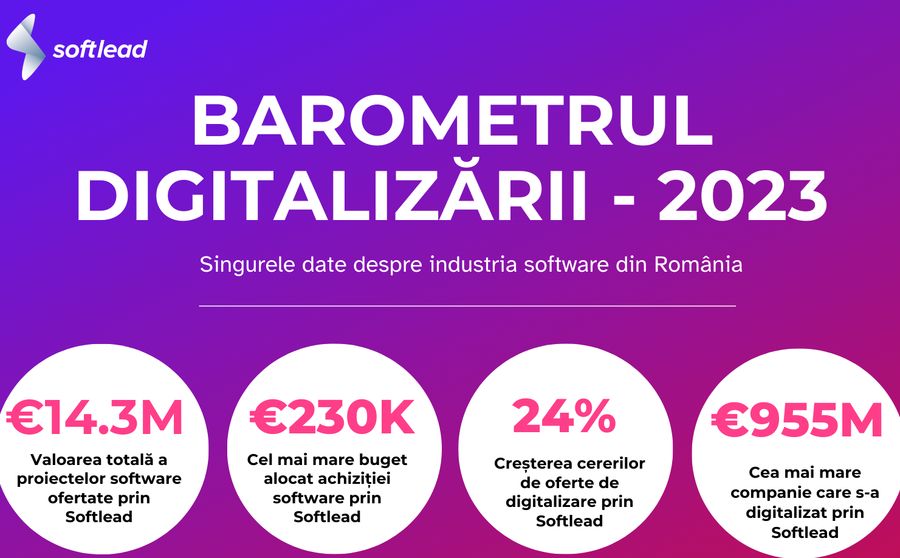In total, valoarea totala a proiectelor software ofertate prin platforma Softlead a depasit 14.3 milioane de euro, ceea ce inseamna o valoare dubla fata de anul anterior. De asemenea, numarul cererilor de oferte pentru achizitii software a crescut cu 24% fata de 2022.