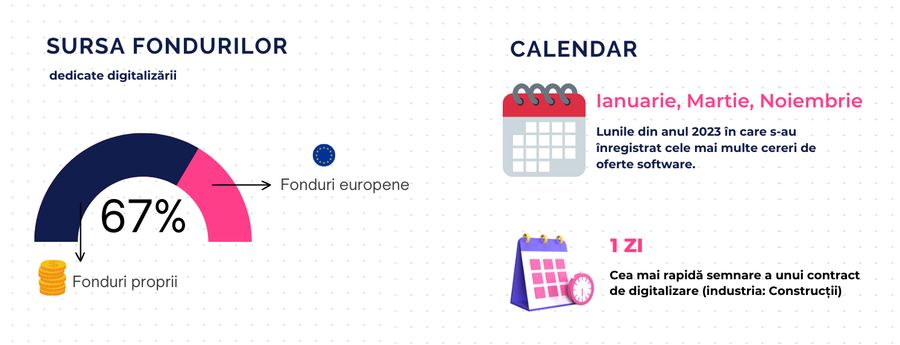 Potrivit datelor Softlead, in 2023, 67.7% dintre companiile care au solicitat o oferta prin platforma s-au bazat pe fonduri proprii pentru finantarea procesului de transformare digitala, in timp ce restul au mizat pe fonduri europene.