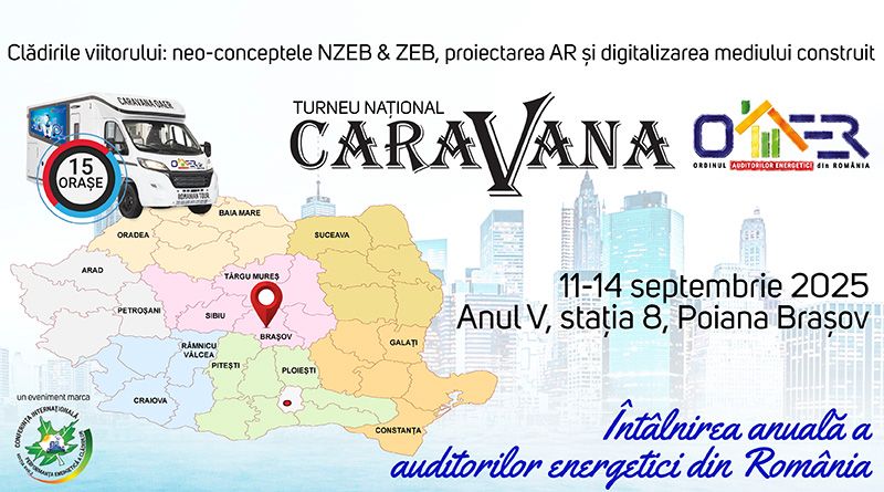 OAER (Ordinul Auditorilor Energetici din Romania, www.oaer.ro) cu sprijinul AIIR (Asociatia Inginerilor de Instalatii din Romania, www.aiiro.ro) si UTCB (Universitatea Tehnica de Constructii Bucuresti, www.utcb.ro) organizeaza in perioada 11-14 septembrie 2024, la Poiana Brasov, a 8-a conferinta din cadrul Caravanei OAER, cu tematica „Cladirile viitorului: neo-conceptele NZEB & ZEB, proiectarea AR si digitalizarea mediului construit”. Specialistii OAER, AIIR & UTCB, alaturi de invitati din partea partenerilor, vor explica arhitectilor, auditorilor energetici, inginerilor cu activitate in domeniul constructiilor, dezvoltatorilor, autoritatilor publice locale si tuturor celor interesati ce inseamna conceptul inovator NZEB (cladiri cu consum de energie aproape egal cu zero) & ZEB (cladiri cu emisii zero) si cum va evolua sectorul cladirilor noi si existente in contextul noilor programe de finantare prin fonduri structurale si PNRR.Obiectivul principal al Caravanei OAER este acela de a transmite cat mai multe informatii despre noile concepte pe care autoritatile locale, dezvoltatorii, dar si constructorii vor fi obligati prin legi si norme tehnice sa le aplice tuturor categoriilor de cladiri: minimizarea consumurilor de energie si a emisiilor de CO2, utilizarea adecvata din punct de vedere tehnic, dar si economic, a surselor regenerabile de energie, proiectarea BIM (Building Information Modelling) si AR (Augmented Reality), tratarea aerului respirat de ocupanti in spatiile din interiorul cladirilor cu echipamente adecvate pentru ventilare mecanica si dezinfectare, exemplificarea unui soft complex pentru proiectarea energetica a cladirilor viitorului sau pentru renovarea aprofundata a cladirilor existente. De asemenea, cadre universitare ale UTCB impreuna cu specialisti reputati la nivel regional ai OAER isi propun sa explice importanta legislatiei europene in domeniul performantei energetice a cladirilor, a noilor programe europene cum ar fi Green New Deal sau FIT FOR 55, precum si implicatiile pentru sectorul constructiilor din Romania.