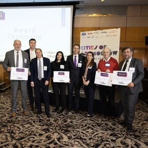 Cateva dintre solutiile inovatoare care pot aduce transformari calitative in viata locuitorilor oraselor au fost premiate in cadrul concursului de proiecte organizat cu prilejul acestui eveniment. Astfel juriul Cities of Tomorrow a ales 10 finalisti din cele 55 de proiecte inscrise in concurs, iar din cele 10 a premiat trei: „Utilizarea nanotehnologiei pentru transformarea deseurilor in resurse”, proiect al companiei Kematronic din Baia Mare, la categoria Mediul de afaceri; „Valea Jiului Vibranta” proiectul Asociatiei Valea Jiului, la categoria societate civila si „Tren Metropolitan” al Asociatiei de Dezvoltare Intercomunitara pentru Transport Public Bucuresti – Ilfov. Premiile oferite de AHK Romania constau intr-un pachet de vizitator la targul Expo Real din München 2023 pentru sectiunea Administratie Publica, un an de parteneriat econet romania, platforma GreenTech a AHK Romania la sectiunea Mediul de Business si un pachet de participare la o delegatie de profil in Germania, la sectiunea Societate Civila.