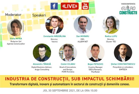Cea de-a cincea editie a seriei de videoconferinte EURO-Constructii, si a doua din 2021, organizata de publicatia Agenda Constructiilor, a avut loc pe 30 septembrie 2021 si a avut ca subiect de dezbatere "Transformare digitala, inovare si automatizare in sectorul de constructii si domeniile conexe". Evenimentul, ce s-a derulat pe o perioada de trei ore, s-a bucurat de interesul unui numar foarte mare de urmaritori, specialisti in arhitectura/ proiectare, constructii, dar si reprezentanti ai sectorului IT&C, atingand aproape 900 de vizualizari in mediul online (pe Facebook si Youtube).