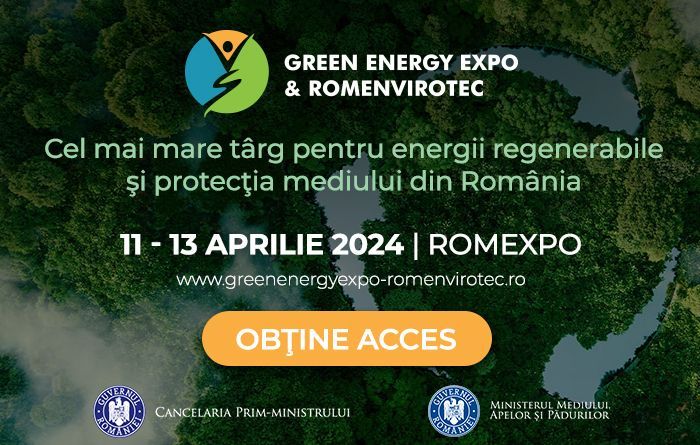 Green Energy Expo & Romenvirotec - Targ pentru energii regenerabile si managementul deseurilor va avea loc in perioada 11-13 aprilie 2024, la Romexpo, Pavilionul B2. Pe o suprafata de peste 6.000 mp de spatiu expozitional, mai mult de 150 de marci internationale si locale isi vor prezenta produsele. In cadrul evenimentului va fi organizat si Forumul International de Mediu si Energie, la care vor lua cuvantul 40 de speakeri, precum si diverse demonstratii de tehnologii si echipamente, in spatiile exterioare.Autoritatile nationale s-au alaturat evenimentului, pentru a-l transforma intr-o platforma esentiala pentru profesionistii din domeniul protectiei mediului si energiilor regenerabile. Aceasta colaborare va contribui semnificativ la identificarea si implementarea celor mai eficiente solutii pentru provocarile mediului, prin dialog constructiv si schimbul de bune practici, au transmis organizatorii.