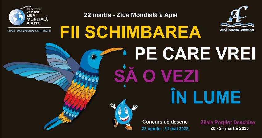 In data de 22 martie, se sarbatoreste Ziua Mondiala a Apei, manifestare ce contribuie la sensibilizarea populatiei, inspirand organizarea unor actiuni de combatere a crizei apei si a salubritatii. Evenimentul este deja traditional, fiind organizat sub egida ONU, coordonat de UN-Water si condus de unul sau mai multi membri si parteneri UN-Water cu un mandat specific. Mesajul din acest an este: "Fii schimbarea pe care vrei sa o vezi in lume! Fiecare picatura conteaza!", motivand, astfel, populatia sa ia masurile necesare in aceasta privinta."Mesajul de mai sus este propus de UN-Water intregii comunitati (organizationale, stiintifice, populatiei, dar si institutiilor guvernamentale din lumea intreaga) cu prilejul Zilei Mondiale a Apei 2023. Acesta vizeaza promovarea dezbaterilor si a informatiilor legate de criza apei si a salubritatii, precum si atitudinea, solutiile pe care trebuie sa le gasim si sa le adoptam pentru a preveni, dupa caz, atenua efectele pe care aceasta le genereaza in special asupra popoarelor mai putin dezvoltate, fie prin insuficienta si lipsa accesului la servicii publice, fie printr-o calitate precara a apei, aflata inclusiv sub presiunea factorilor de poluare", au precizat reprezentantii Administratiei Nationale Apele Romane (ANAR).