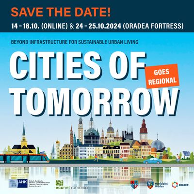 In perioada 24-25 octombrie 2024 Camera de Comert si Industrie Romano-Germana (AHK Romania) organizeaza conferinta Cities of Tomorrow. Evenimentul, ajuns la cea de-a 12-a editie, se desfasoara anul...