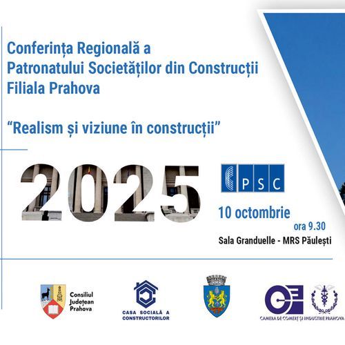 Pe data de 10 octombrie 2025, a avut loc Conferinta regionala "Realism si Viziune in Constructii", organizata de Patronatului Societatilor din Constructii (PSC) - Filiala Prahova, in...