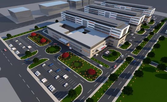 - cladirea principala a spitalului (suprafata desfasurata de circa 141.000 m.p.);