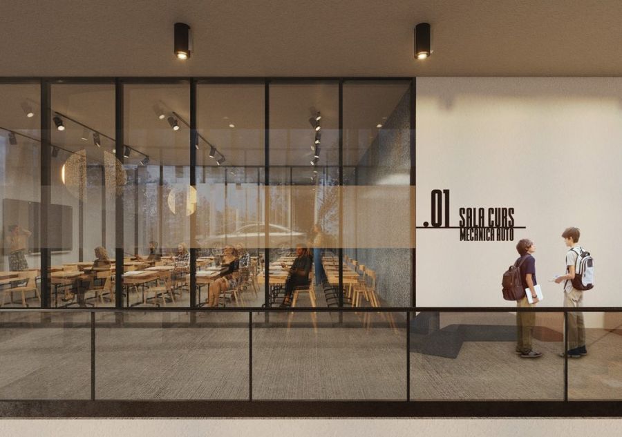 - un centru educational cu 10 sali de clasa, 10 ateliere tehnologice/de practica digitale + anexe (cate 2 ateliere pentru fiecare domeniu vizat, respectiv industria auto si mecatronica, industria aeronautica, IT, alimentatie publica si turism), un atelier digital multifunctional universitar, biblioteca (sala de lectura, birou administrator, rafturi carti, spatiu discutie), spatii de recreatie la interior, spatii tehnice si pentru depozitari, grupuri sanitare, cabinet medical, spatii administrative, centru de resurse;