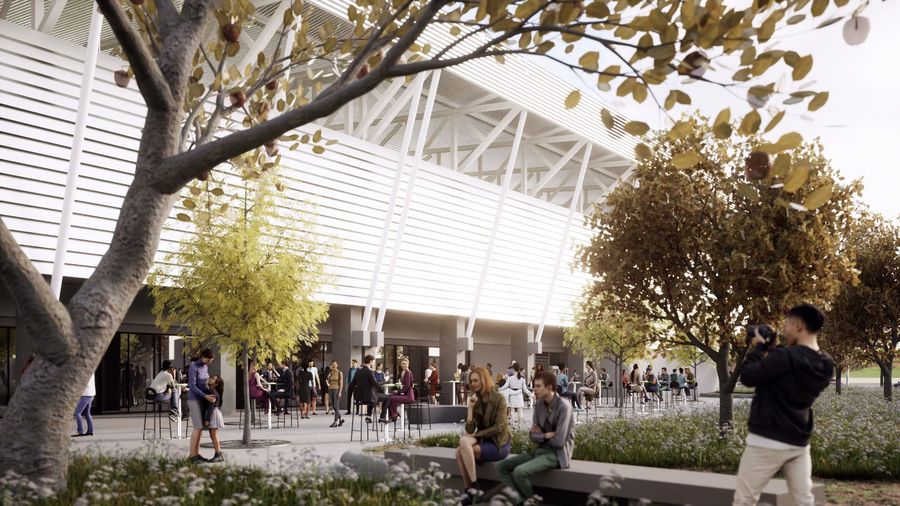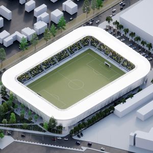 Cladirea care va adaposti tribuna oficiala va fi ridicata pe 3 niveluri (P+2E), aici urmand a fi amenajate si vestiare, spatii administrative/ tehnice, zone VIP, spatii pentru media etc., iar celelalte trei cladiri (cealalta tribuna si cele doua peluze) vor avea un singur nivel (parter), iar functiunile sunt propuse sub gradene (spatii comerciale, tehnice, birouri administrative, unitati de cazare etc.).
