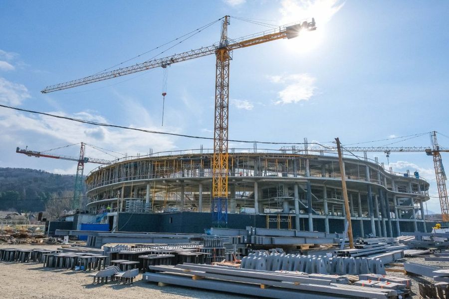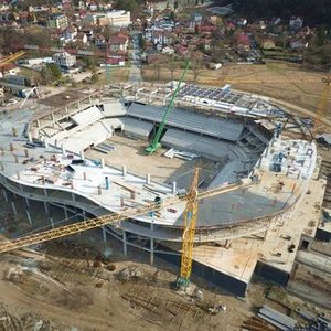 Conform reprezentantilor firmei de constructii, pana in acest moment s-au realizat lucrarile la structura de rezistenta, in proportie de 90%, inclusiv montarea prefabricatelor din beton pentru gradene. Se lucreaza la turnarea stalpilor de rezistenta de la ultimul nivel, lucrarile la acest nivel fiind realizate in proportie de 70%.
