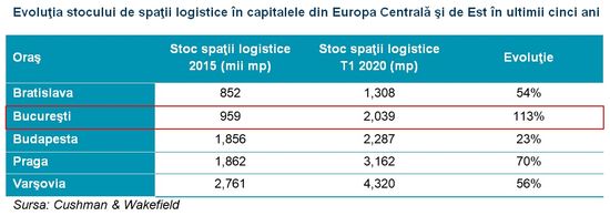 Stocul spatiilor industriale si logistice din Bucuresti s-a dublat in intervalul 2015-2020, capitala Romaniei fiind cea mai dinamica piata din regiunea Europei Centrale si de Est in intervalul analizat, capatand amploarea unui pol logistic regional. La inceputul acestui an, stocul spatiilor logistice din preajma Bucurestiului a depasit pragul de doua milioane mp, apropiindu-se de nivelul din Budapesta, care masoara 2,3 milioane mp si care a crescut cu circa 23% pe parcursul ultimilor cinci ani.